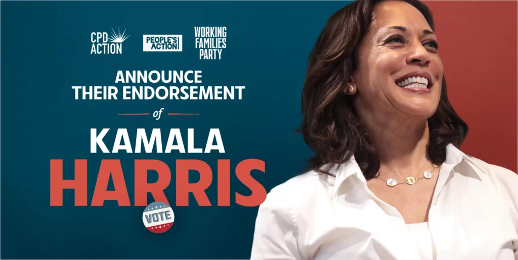 WASHINGTON, D.C. — Today, three of the country’s leading progressive organizations, Center for Popular Democracy Action (CPD), People’s Action, and Working Families Party (WFP) announced their endorsement of Vice President Kamala Harris.