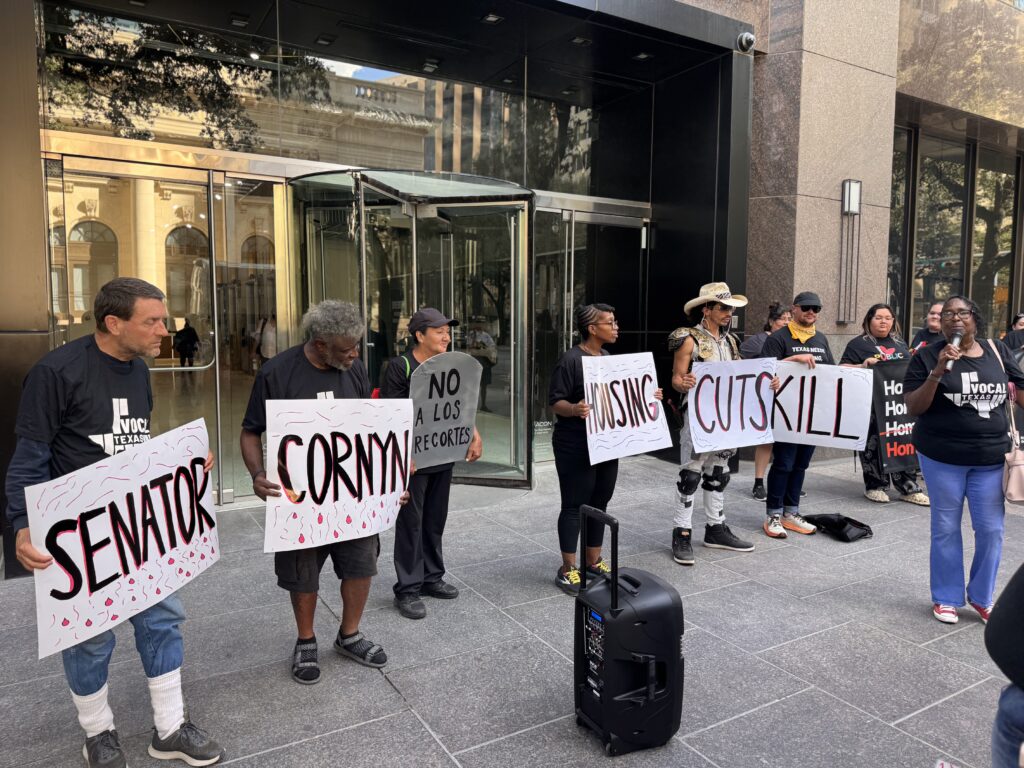 The protest, convened by VOCAL-TX with the Texas Coalition for Tenant Justice, drew attention to the more than 9 million people who may become homeless nationwide if the HUD cuts to housing vouchers, which are planned as part of Republicans’ 2026 budget, take effect.